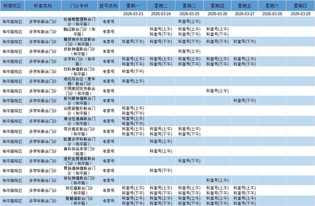 和平路院区多学科联合门诊排班表