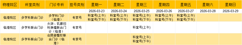 临港院区多学科门诊排班表