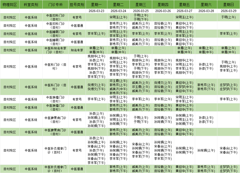 中医系统门诊排班表