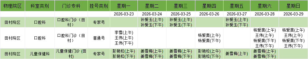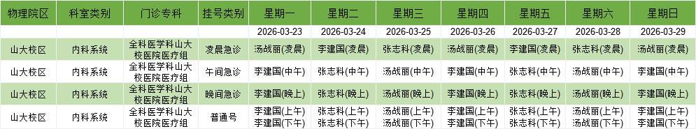 山大校园门诊排班表