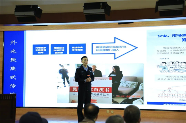 活动中,民警结合本地经济犯罪发案形势,重点围绕新型涉众型犯罪的特点、类型及防范要点进行讲解。通过真实案例剖析、面对面交流互动等方式,详细介绍了集资诈骗和传销的常见手段、作案特点及犯罪伎俩,向职工普及防骗知识和防范技能。