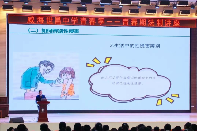 与此同时,世昌中学正在举行法治副校长聘任仪式暨普法进校园活动。该院第二检察部主任王萍被聘为该校法治副校长,她带领的“普法小队”为初一学生带去了一堂主题鲜明、干货满满的预防性侵害专题法治课。