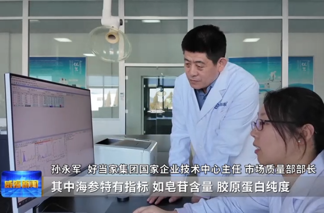 在孙永军看来,“优生优育”只是品质的起跑线,想要把一头好海参安全送上老百姓的餐桌,离不开全链条的接力把关。在好当家国家级食品检测中心,工作人员正在检测海参的农残指标。