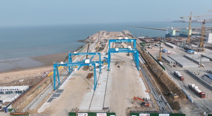 “山东港口装备集团高端海工装备制造基地项目”建设现场。(王飞达 摄)