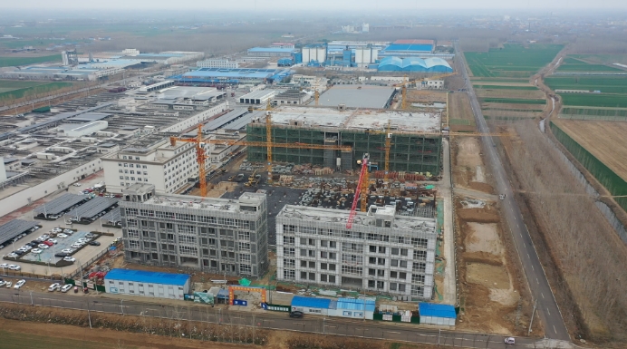 “山东晟兴食品有限公司3万吨鲜食食品智慧冷链项目(二期)”建设现场。(王浩 摄)在菏泽市曹县,山东省级重点项目“山东晟兴食品有限公司3万吨鲜食食品智慧冷链项目(二期)”也在加快建设。该项目总投资3.5亿元,目前建设进度已过半,预计于今年7月投产。