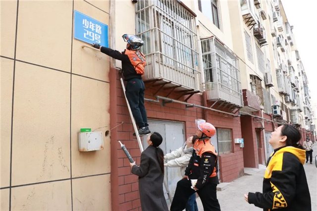 启动仪式结束后,实践分会场的暖心活动同步开展,让共建力量快速转化为便民服务行动。长征社区内,新就业群体代表与社区工作人员分组行动,深入居民楼栋张贴规范楼宇单元标识,为快递、外卖骑手搭建友好服务场景,推动精细化治理走深走实;北门外社区则开展点对点家庭结对共建活动,新就业群体代表与社区老年家庭、独居家庭现场完成结对认领,面对面沟通服务需求,后续将为结对家庭提供代买代办、探视慰问、应急帮扶等便民服务,让邻里互助的温暖在社区传递,构建和谐友爱的社区氛围。