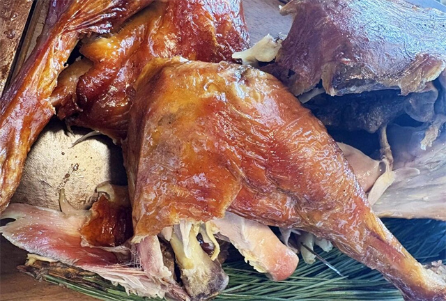 外焦里嫩的松针烤鸡是招牌