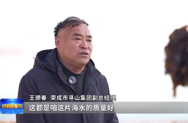 荣成市寻山集团副总经理王德春说,今年海带长势特别好,叶片肥厚、品质很好,这都是咱这片海水质量好,海带的品相和营养都达标,收购价也比往年高了不少。