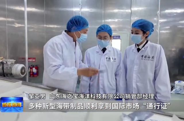 邹亚男说,在海关帮扶下,海带面、烘干海带片等多种新型海带制品顺利拿到国际市场“通行证”,不仅通过了欧美检测,还成功拓展了马来西亚等多个新市场。