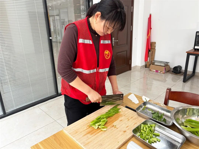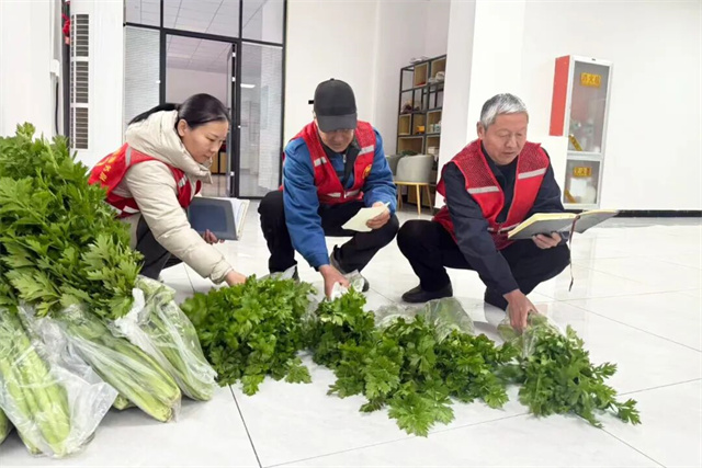 在保障“买得到、买得好”的基础上,草庙子镇将服务链条进一步延伸至“用得好”,针对不同群体的痛点提供精准解决方案。对于行动不便、高龄、独居等特殊群体,各社区组织志愿者成立“暖心配送队”,提供“门对门”的上门配送服务,真正践行“新鲜农产送上门,特殊群体不跑腿”的承诺,累计服务已达200人次。而针对年轻上班族普遍反映的“下班晚、没时间洗菜切菜”这一核心痛点,天亿社区率先进行了服务升级——引入“净菜加工”服务。
