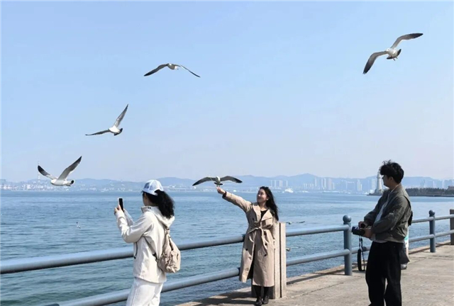 假期里,威海大相框、悦海公园、火炬八街等网红打卡地人气高涨,市民游客纷纷驻足留影,定格花海与碧海相映的动人瞬间。环翠楼、里口山等景点同样游人如织,大家登高望远,尽览春日盛景。