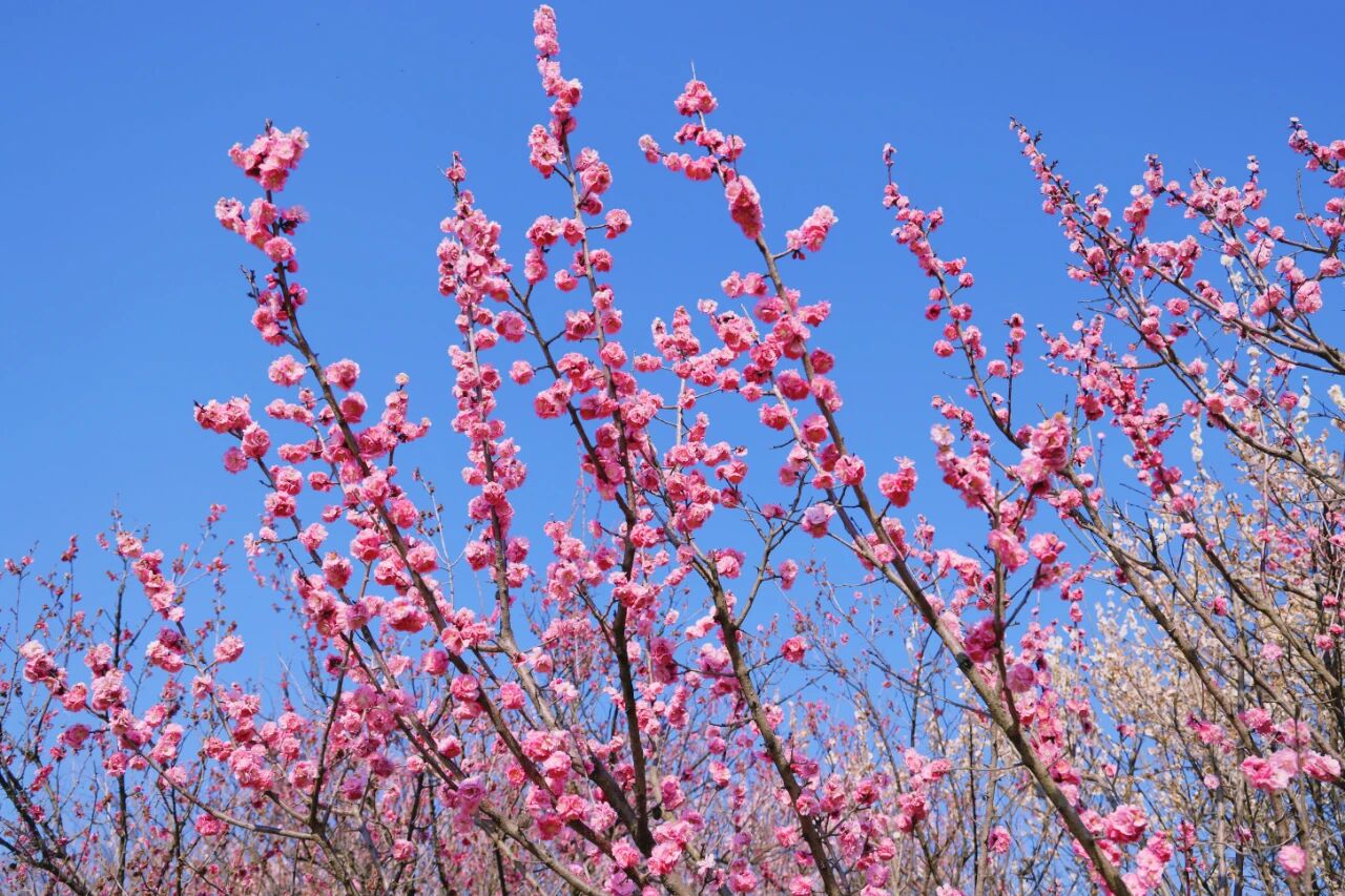 好消息是,目前正值杏梅、真梅等梅花的盛花期,清明假期,正好赶上这场春天的视觉盛宴!接下来还将有其他品种的梅花接替盛放,赏花期可一直持续到4月下旬。