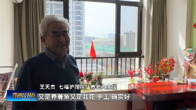 七福护理院住养老人的家属王天杰介绍说:“你看我这个房间,又是养着鱼又是栽花、手工,确实好。这是老师教的,护理院那阵进行消防教育,老师马上教给我们做个消防器材。”