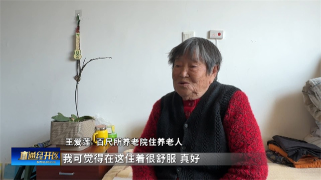 百尺所养老院的住养老人王爱莲介绍说:“一天三顿喝个现成的,还不变样的饭多好。唱歌有歌厅,打扑克也有打扑克的,我还闲着有个弹琴的我想去唱两首就去唱两首,比跟家里有趣多了。我可觉得在这住着很舒服,真好。”