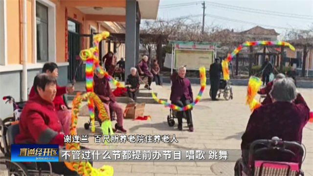 百尺所养老院住养老人谢连兰介绍说:“不管过什么节都提前办节目、唱歌、跳舞,在这里真愉快,真高兴。”