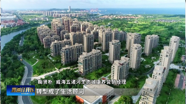 威海五渚河生态城康养营销经理鞠贤朴介绍说:“我们想做的不止是一套房子,而是一种有家、有爱、有生活的状态。所以一开始我们就把置业顾问转型成了生活顾问,我们搭建了四大服务板块:生活、智慧、乐享、健康。目前这四大板块已经落地了70%左右。”
