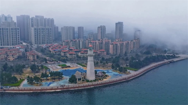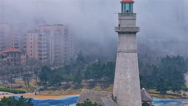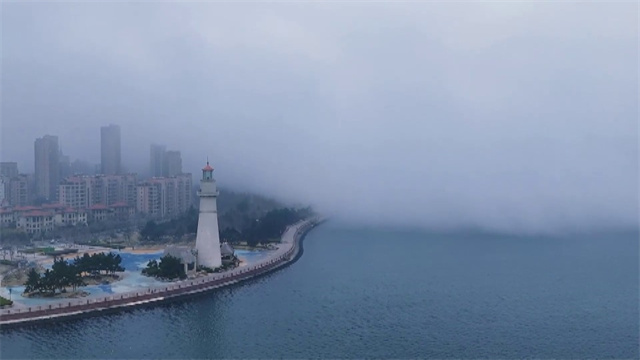 当平流雾漫过经开区的海岸,灯塔在氤氲雾气中若隐若现。云雾缭绕,海天一色,宛若童话秘境。