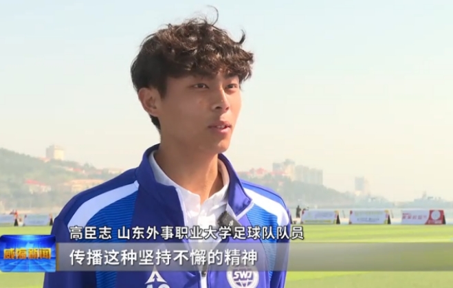 山东外事职业大学足球队队员高臣志说,希望他们能继续夺得冠军,传播这种坚持不懈的精神。