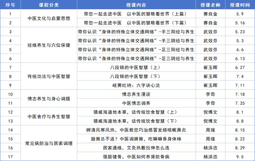 市卫生健康委邀请了全市中医养生届的“讲师天团”将于每周六晚上在威海市科技馆为上班族和中医药养生爱好者量身开设晚间课堂,利用下班后的闲暇时段,听专业医师深入浅出的授课,传授接地气的居家养生技巧,学会辩证调理、日常养护,用传统中医智慧,舒缓疲惫、滋养身心,给自己和家人一份长久的健康守护。