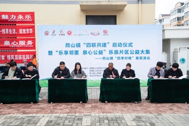 活动现场,隆重举行蔄山镇“四联共建”签约仪式。区工委政法工作部(社会工作部)副部长慈冉冉出席并致辞,阐释“村社联建、会社联建、政社联建、站社联建”的合作蓝图。