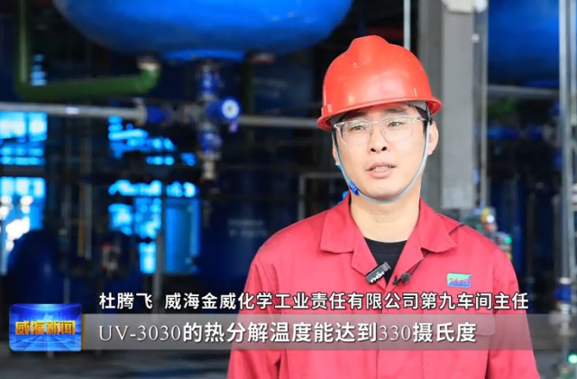 威海金威化学工业责任有限公司第九车间主任杜腾飞说,UV-3030的热分解温度能达到330摄氏度,紫外线吸收光谱的话,能到390纳米。目前产能是年产500吨,排产计划能排到一个季度以后了。