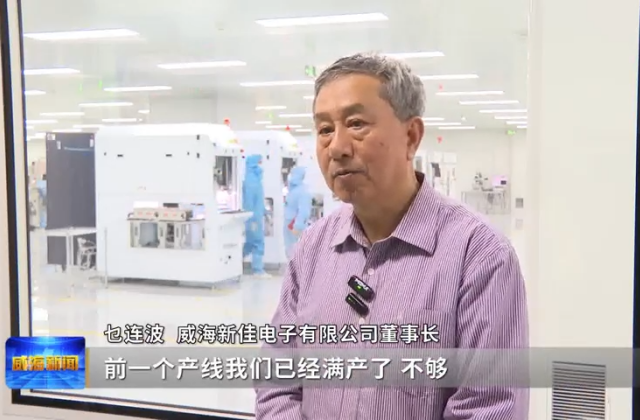 威海新佳电子有限公司董事长乜连波说,前一个产线已经满产了,不够,现在根据客户的要求,再建第二条产线,投产以后产能能提高一倍,也就是又实现一个新的30万只。