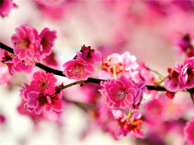 顺着里口山水库往东走,一路上梅花正烈,红艳动人。