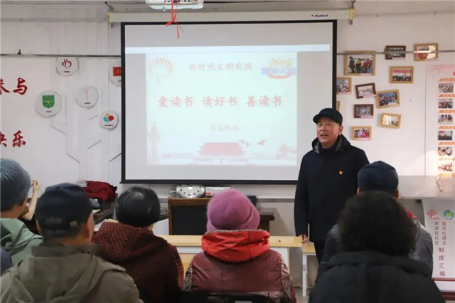 古北社区创新打造“读书+微宣讲”特色场景,社区工作人员与党员志愿者化身领读人、宣讲员,围绕红色故事、经典文学、生活哲理、儿童绘本等内容,与居民围坐共读、畅谈感悟,在轻松温馨的氛围中传递正能量,让党的创新理论与文明新风入耳入心。同时依托党建联席会议平台,广泛发动辖区单位、党员群众捐赠闲置好书,有效盘活图书资源,持续充实社区阅读阵地。