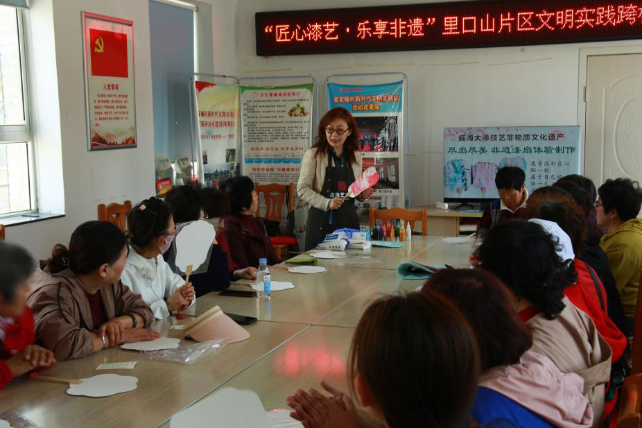 解锁非遗新体验,指尖生花乐无穷。4月23日,环翠区里口山姜家疃村新时代文明实践站里热闹非凡,“匠心漆艺·乐享非遗”里口山片区文明实践跨村联建主题活动温情启幕,片区四个村的26名村民欢聚一堂,沉浸式解锁大漆扇染色技能,在亲手创作中感受非遗的独特魅力,共赴一场别开生面的文化之约。