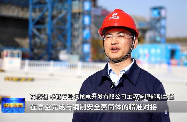 华能石岛湾核电开发有限公司工程管理部副主任蒋叔强说,穹顶吊装需起吊60米后,在高空完成与钢制安全壳筒体的精准对接,精度必须要达到在毫米级,误差还不能超过一枚硬币的厚度。因此吊车行进路线、吊装站位点地基均做了严格试验,吊装前做了多次模拟吊装,确保吊装安全、顺利,一次到位。
