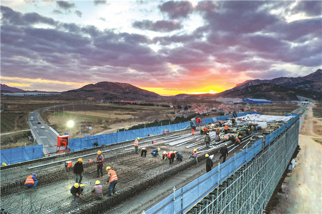 莱荣高铁威海段跨S202省道连续梁浇筑完毕