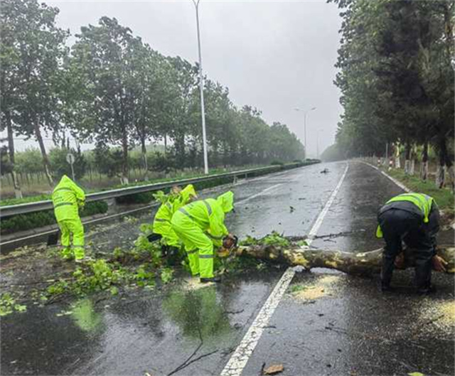 荣成公路建设养护中心清理倒伏路树保畅通