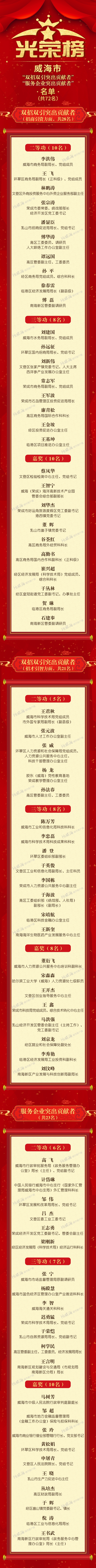 威海市“双招双引突出贡献者”“服务企业突出贡献者”名单